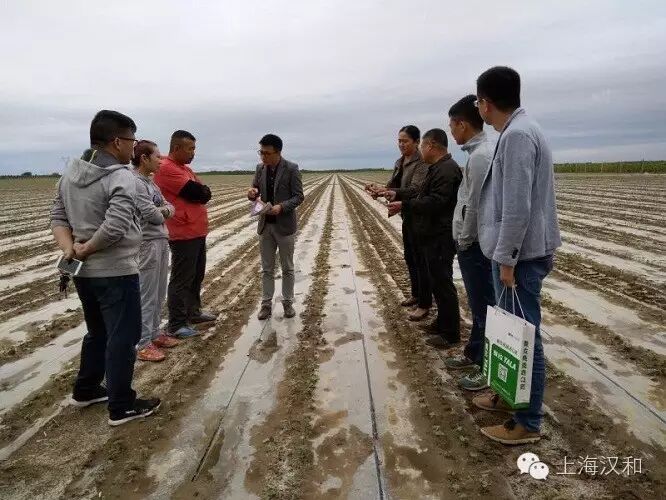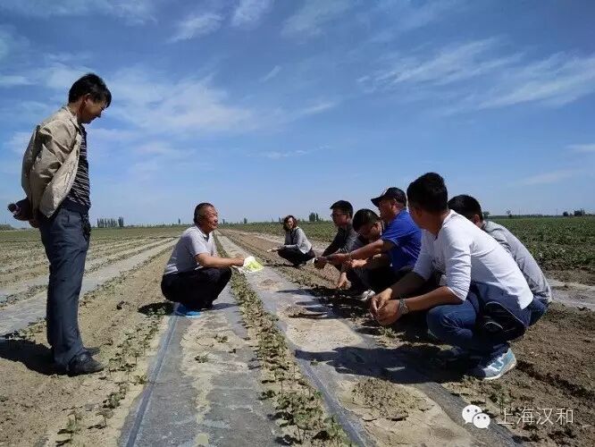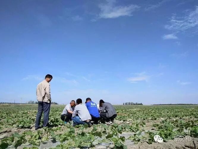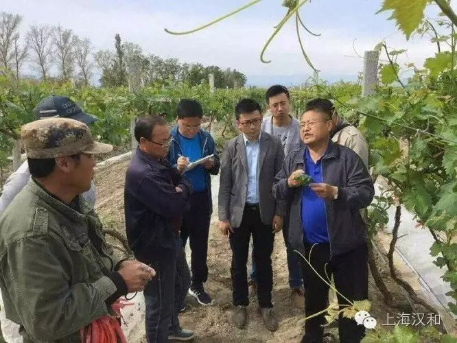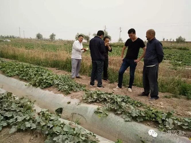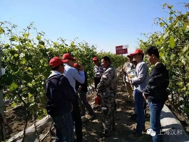 (與基地大戶交流葡萄、鈣果、葫蘆等作物的管理技術。漢和產品的良好口碑在奎屯持續傳播。大量的產品試驗示范已相繼展開)