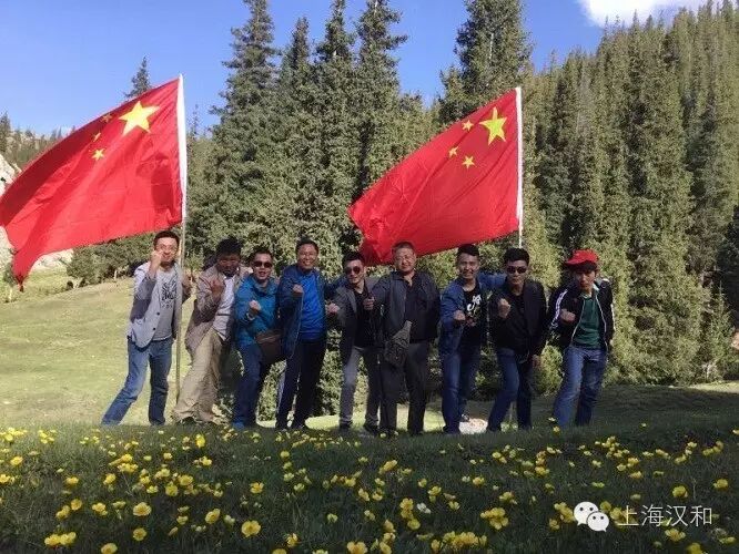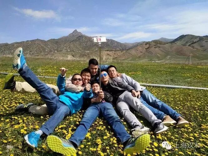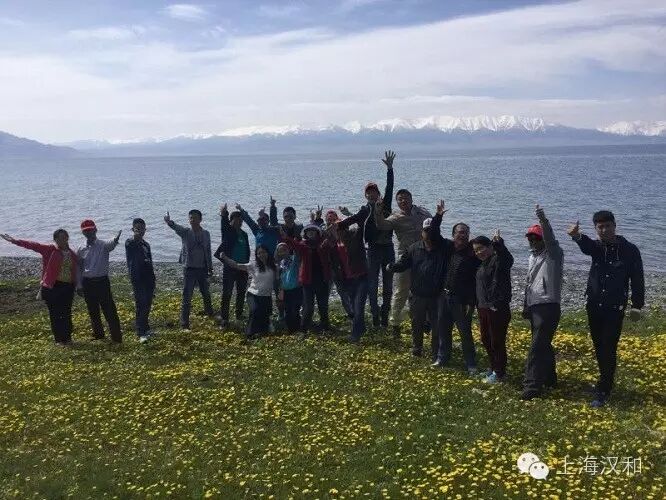 (工作閑暇之余,新大地農資業務精英團隊與漢和農化技術團隊一行在賽里木湖舉行春游活動)